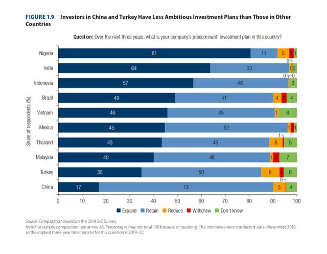 Tỷ lệ doanh nghiệp muốn mở rộng hoạt động tại Trung Quốc chỉ 17%, thấp nhất trong số 10 quốc gia. Tuy nhiên, 73% doanh nghiệp vẫn muốn duy trì hoạt động ở đất nước 1,4 tỷ dân.
