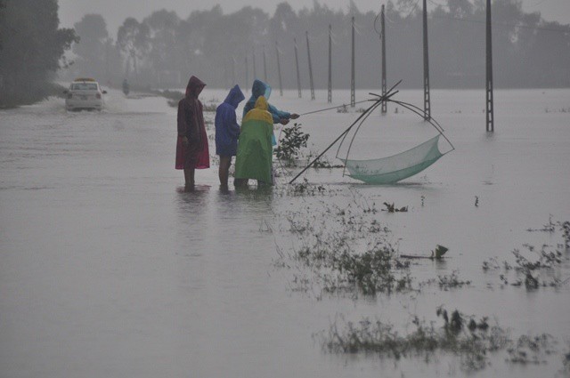 Do ảnh hưởng của áp thấp nhiệt đới và bão, thời gian qua trên địa bàn tỉnh Thừa Thiên Huế mưa to đến rất to. Mưa kéo dài, nước trên thượng nguồn đổ về nhiều khiến mực nước các con sông, suối dâng cao, chảy xiết. Hòa trong dòng nước lũ cuồn cuộn là rất nhiều các loại tôm, cá, chim, chuột đồng nên không ít người dân tranh thủ rủ nhau ra sông, suối đánh bắt.
