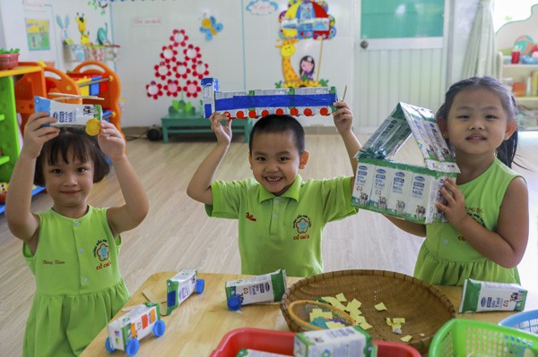 Gấp gọn vỏ hộp sữa và đặt đúng nơi quy định sau khi uống sữa cũng là một kỹ năng sống cho trẻ và là mục tiêu bảo vệ môi trường mà Vinamilk và chương trình SHĐ hướng đến