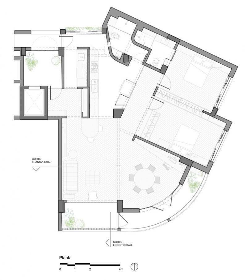| Mục tiêu của nhóm KTS Estúdio Lava là giữ lại một số thiết kế ban đầu của căn hộ và đưa một số hạng mục quan trọng đã bị thay đổi do những lần cải tạo trước đó trở về nguyên bản. |