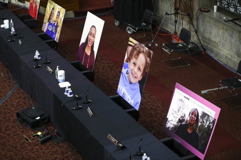 | Các thượng nghị sĩ Dân chủ trong ủy ban phản đối bằng việc không xuất hiện tại cuộc họp, thay vào đó để ảnh các công dân Mỹ phải sống dựa vào đạo luật ACA. Ảnh: AP. |